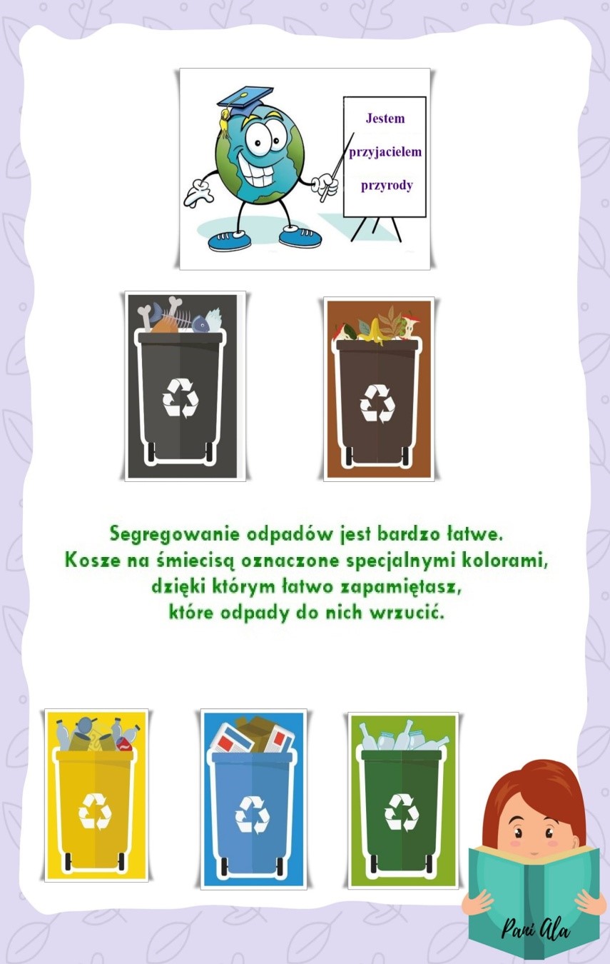- Drogi Przedszkolaku po obejrzeniu filmu i zapoznaniu się z Zasadami Małego Ekologa mamy dla Ciebie propozycję kilku kart pracy, które pomogą Ci utrwalić zdobytą wiedzę. (karty pracy przesłane przez wychowawcę)